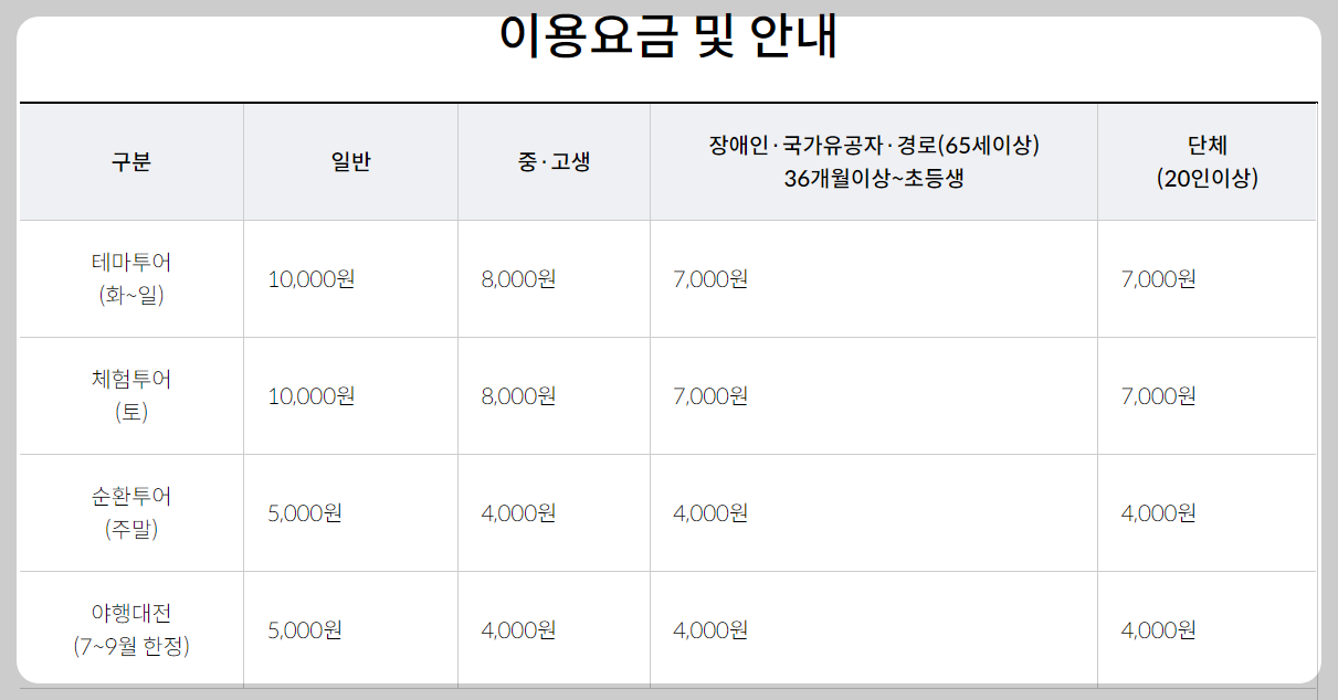 - 홈페이지: www.daejeoncitytour.co.kr👈여기서 예약하기